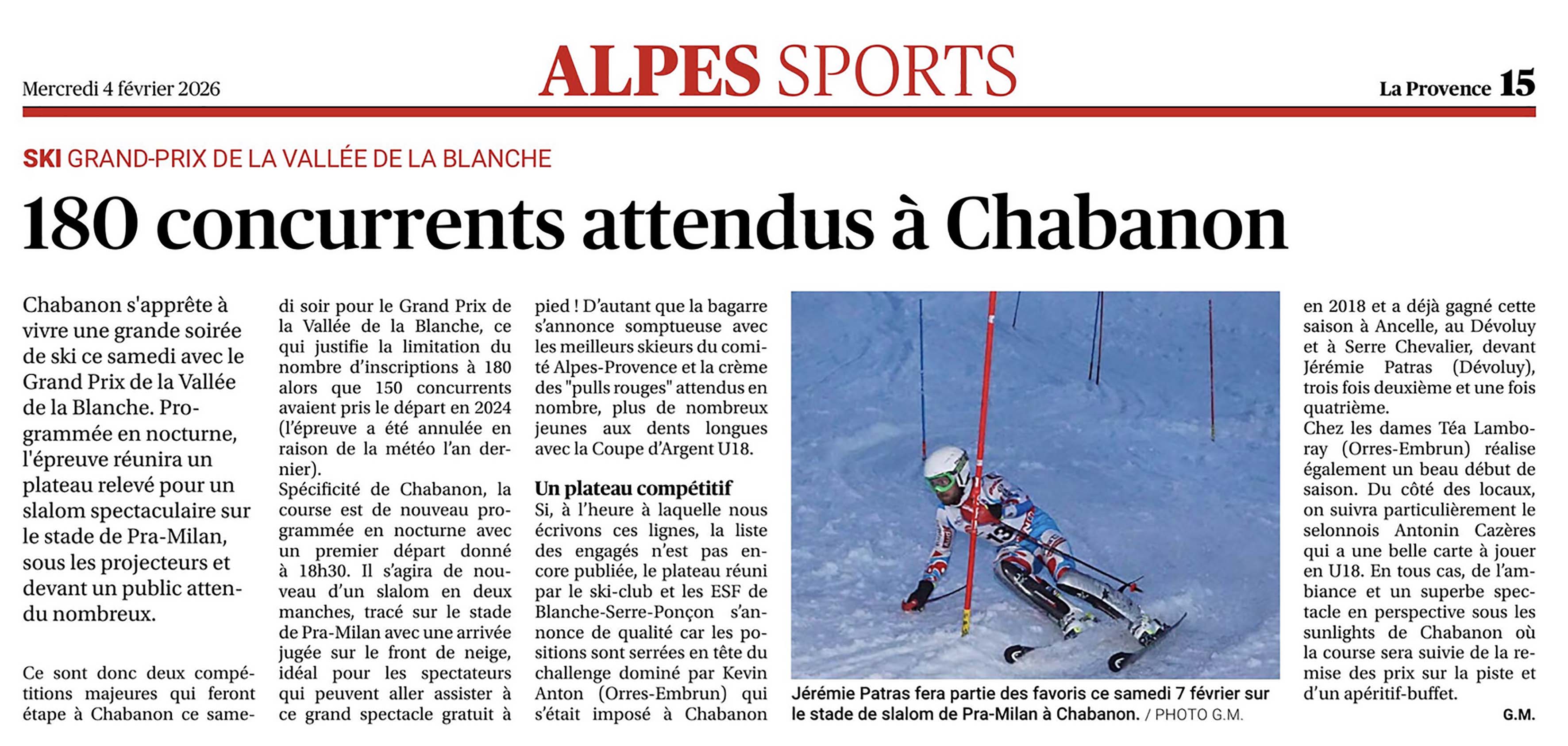 ARTICLE ALPES SPORTS / 180 CONCURRENTS ATTENDUS A CHABANON